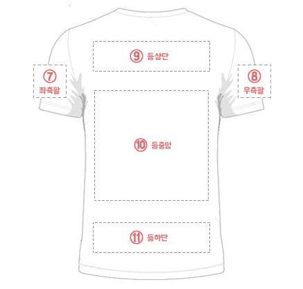 * 위 인쇄 위치는 보편적으로 들어가는 위치입니다. 고객님께서 인쇄 방법을 선택 후 원하는 위치나 참고사항을 적어주세요. 첨부파일이 있을 경우 파일을 첨부해 주세요.